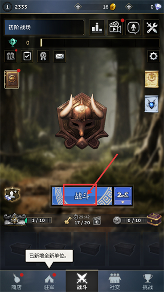 2、进入【初阶战场】后点击【战斗】按钮,开启对局以获取资源和提升战力。