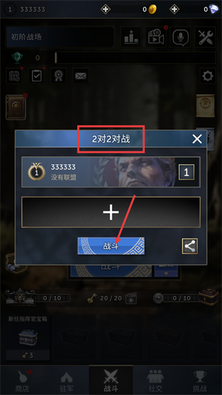 1、在【2对2对战】界面点击【战斗】按钮,匹配队友开启团队对战模式。