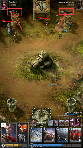 3、优先攻击敌方防御塔(如【1863】【1497】战力目标),快速削减敌方建筑血量。