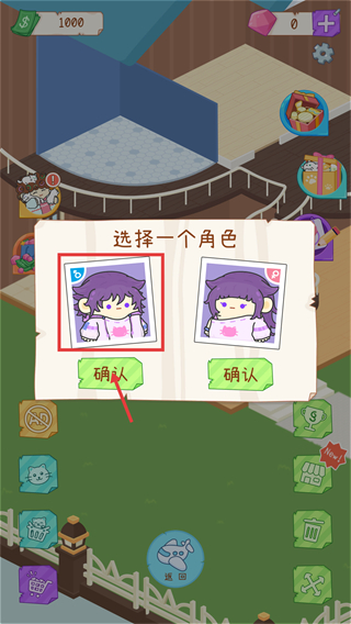 1、进入游戏后先选择角色,点击对应角色下方的【确认】按钮即可完成角色选定,开启游戏。