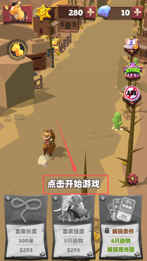 2、达成条件:套索3只动物并跑到300米,解锁观光团新区域。