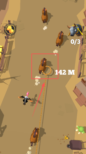 3、收集进度:在0/3目标下前进至142米,继续套动物。
