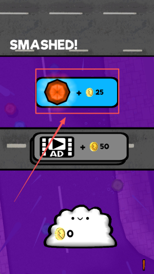 3、等待结果:转盘停止,屏幕弹出“SMASHED! +25”获得奖励。