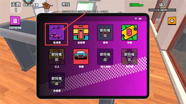 2、在平板电脑界面中,点击【批发商】选项进入对应功能页,这是完成首个订单任务的关键入口。