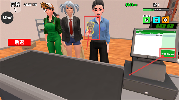 2、交易结算支持现金与刷卡两种模式,不同支付方式对应不同操作流程,既丰富经营体验,又增添真实商业场景的代入感。