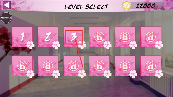 1、在【LEVEL-SELECT】界面,选择已解锁的【3】号关卡开始挑战,当前拥有【22000】货币可备用。