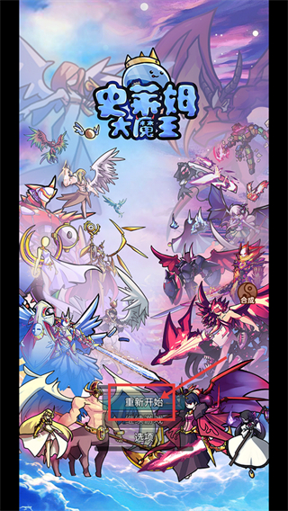 1、在【史莱姆大魔王】界面,可选择【重新开始】开启新进程,或点【继续游戏】接续之前进度,也能通过【合成】功能强化角色。