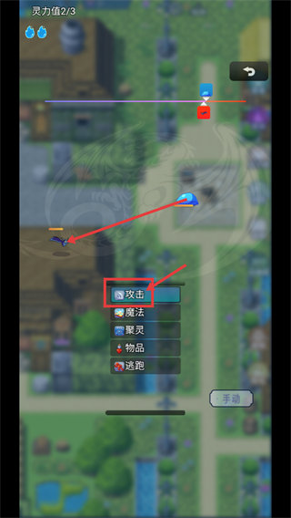 2、战斗时关注【灵力值2/3】状态,优先使用【攻击】指令对目标发起进攻,搭配其他功能选项提升战斗效率。