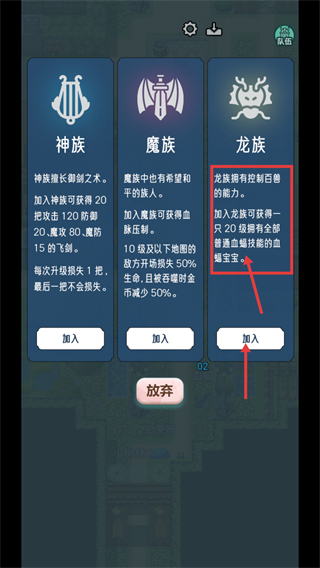 1、选择【龙族】加入可获得【20级-普通血蝠技能的血蝠宝宝】,其具备控制百兽能力,助力前期战斗推进。