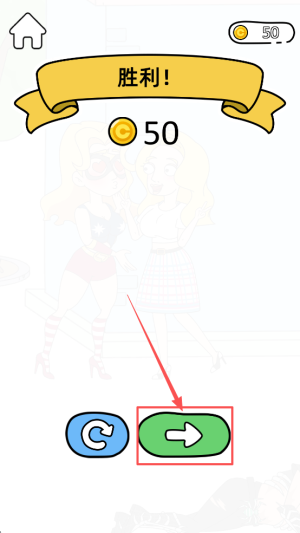 4、获得胜利:成功完成救援后,屏幕显示“胜利!”并获得50分奖励,点击继续下一关。