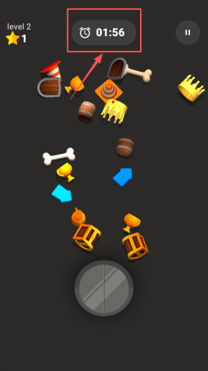 3、计时闯关:进入level 2界面,注意顶部@ 01:56倒计时,快速操作完成关卡目标。