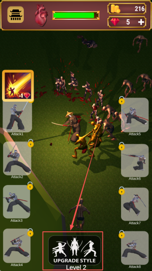 4、升级战斗风格:在战斗中,点击“Upgrade Style”按钮并选择“Level”来提升你的战斗技能。