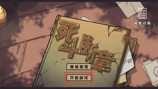 1、在初始界面点击【开始游戏】进入关卡,若有之前进度可选择【继续旅程】,右上角【调查问卷】暂不影响流程可后续处理。