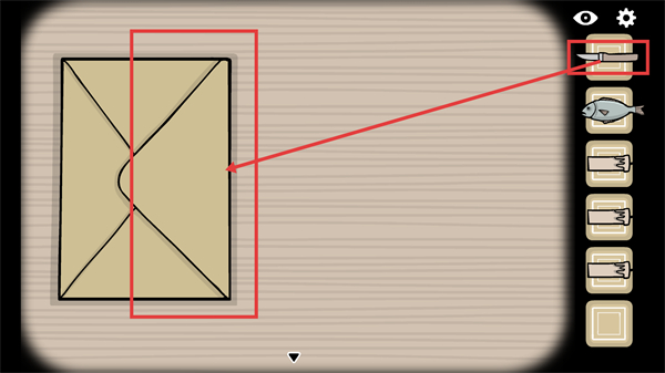 4、使用道具栏中的【小刀】,交互当前界面的信封类物品,可解锁新的线索或道具,推进解谜进程。