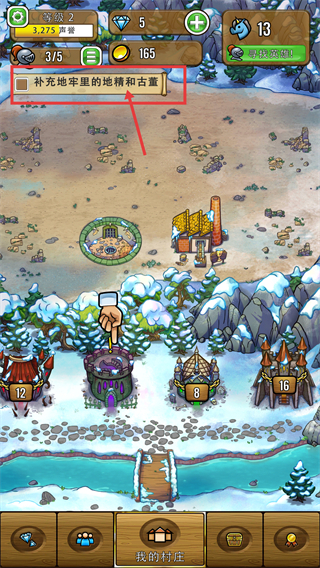 4、完成古董补充后,接取【补充地牢里的地精和古董】任务,点击地牢建筑继续推进。