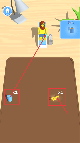 2、按提示【找出】指定杯子积木,选取对应组件后完成场景内角色的道具匹配。