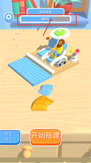 3、查看【建造进度-66%】,点击【开始搭建】继续完成剩余组件的拼接以推进关卡。