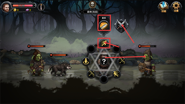 2、在【森林(浅层)】战斗时,遇到哥布林-狼这类多敌方单位,可借助【重新】类技能调整配置,搭配攻防技能提升战斗的容错率。
