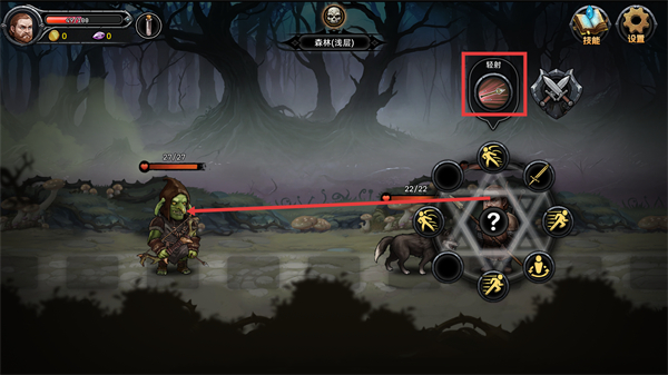 3、在【森林(浅层)】的战斗里,使用【轻射】技能能精准攻击单个敌方(如哥布林),集中输出快速削减其血量,高效推进战斗进程。
