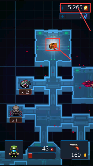 4、关卡地图中出现的资源道具(如标识区域),拾取后可增加右上角【5265-积分】类资源,助力武器升级等养成操作。