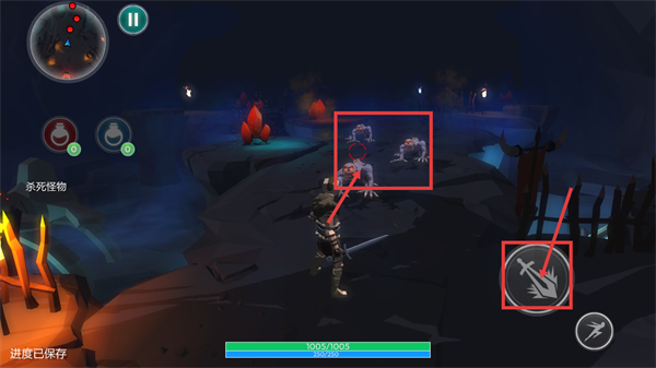 3、接到【杀死怪物】任务后,点击右侧攻击按钮攻击目标怪物,完成后进度会自动保存。