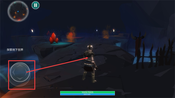 2、在【探索地下世界】场景中,通过左侧的移动按钮操控角色移动,可前往目标区域推进流程。