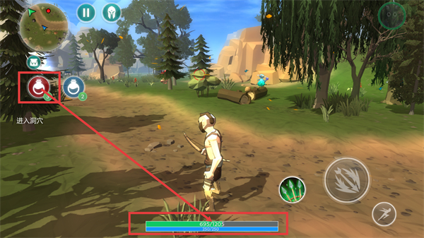 4、当生命值(如【695/1205】)降低时,点击左侧的红色恢复道具,可快速回复生命值,保障探索过程中的生存能力。