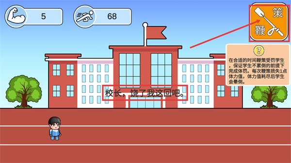 4、使用【策鞭】道具鞭策受罚学生时,需控制频率避免其体力耗尽晕倒,完成体罚以规范学生行为。