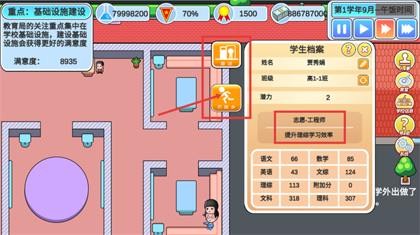 高考工厂模拟2最新版无限金币是一款主打校园经营的模拟作品,玩家将以校长身份统筹学校运转,从师资建设到教务管理全面把控,借助破解带来的便利条件,更轻松地推进校园升级计划,打造口碑与升学率双优的知名高中,享受沉浸式的办学体验。搭建学生互助共进的成长环境,成绩优异的学生可形成正向带动,为同伴突破学习瓶颈提供助力,营造良性竞争的校园氛围。