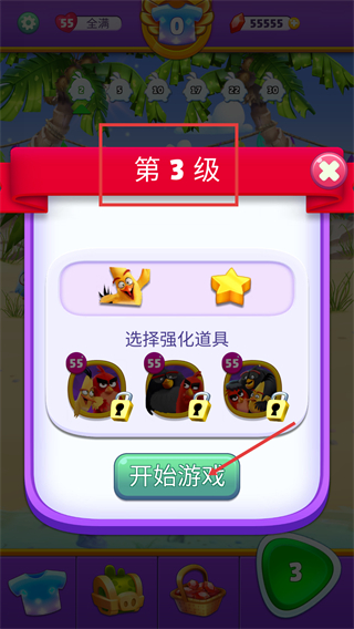 1、进入【第3级】界面,【选择强化道具】栏的道具暂未解锁,直接点击【开始游戏】按钮,即可进入当前关卡的消除玩法。