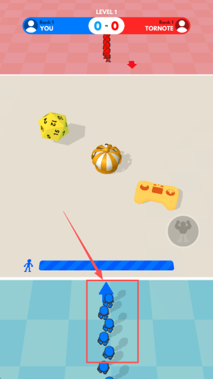 3、开始竞技:持续滑动控制角色移动,收集道具并撞击对手得分。