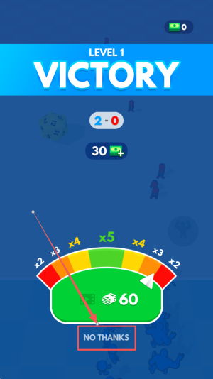 4、领取胜利:屏幕出现“VICTORY”与奖励数值,点击“60”领取金币并继续下一关。