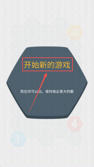1、进入游戏:首先打开游戏主界面,点击“开始新的游戏”,阅读“保持搞出更大的数”提示。