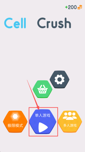 2、选择模式:在+200Cell Crush界面点击“单人游戏”,进入经典数字合成模式。