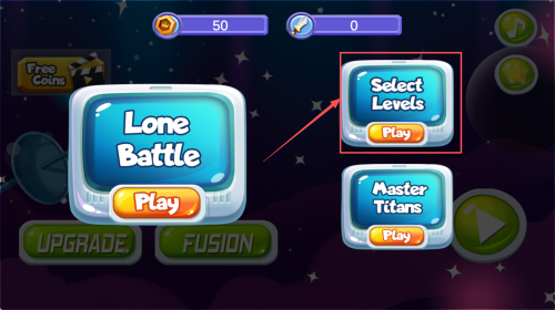 2、选择游戏模式:在游戏模式选择界面中,点击“Lone Battle”或“Select Levels”按钮,选择你想要进行的游戏模式。