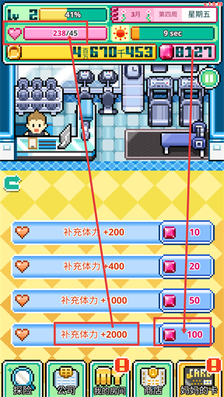 1、【Lv-2】状态下体力为【238/45】,可消耗【宝石】选择不同档位补充体力,如【补充体力+2000】需耗【100】宝石。