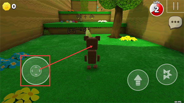 2、通过左下角的方向键控制【小熊】角色移动,界面右上角显示【Life-2】,配合右侧按钮可进行跳跃等操作推进关卡。