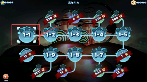 3、选择关卡:在关卡选择界面,点击“嘉年华市”选择第一个关卡开始游戏。