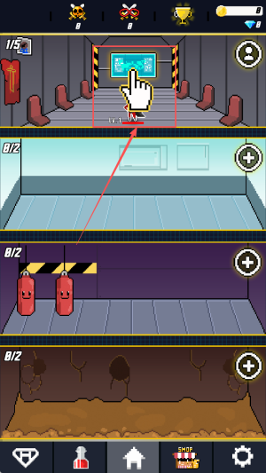 1、开始教程:进入游戏后,点击屏幕上的手指图标,开始教程关卡。