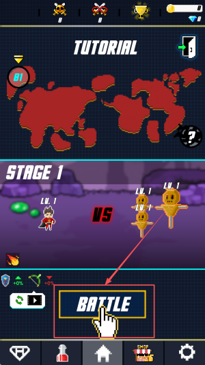 2、进行战斗:在教程关卡中,点击“BATTLE”按钮,开始与对手的战斗。