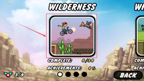 1、操控单车男孩开启跑酷闯关,点击屏幕底部加速按钮提升行进速度,快速穿越平缓路段节省闯关时间。