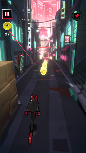 1、扮演赛博武士开启跑酷闯关,操控角色在霓虹街道全力冲刺,精准操控方向规避沿途障碍与敌人攻击。