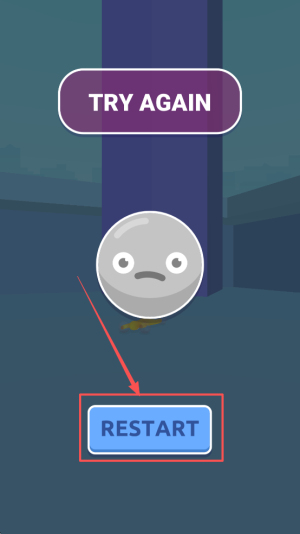4、重开游戏:结算界面出现TRY AGAIN,点击RESTART,立刻重新开始。