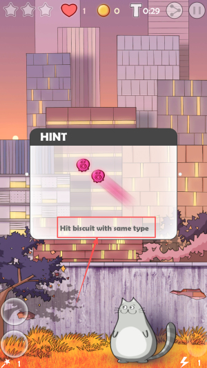 1、熟悉核心操控:掌握饼干发射的基础操作,明确“匹配同色饼干、击落目标投喂猫咪”的核心目标。