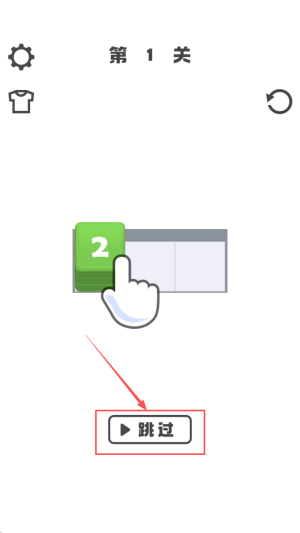 1、进入第1关:屏幕显示“第1关 2 跳过”,点击“跳过”按钮,直接进入下一环节。