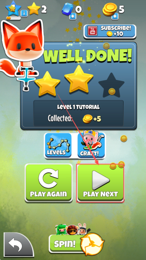 4、领取奖励:弹出“WELLDONE! SUBSCRIBE! +10”,点击“PLAY NEXT”,立刻收下奖励并继续。
