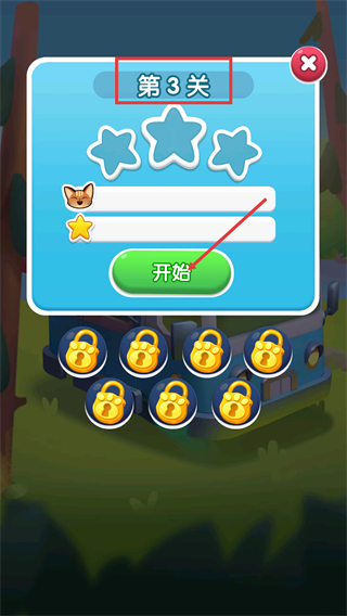 1、进入【第3关】界面后,确认界面中的进度标识,点击【开始】按钮开启本关,后续需完成对应收集目标推进关卡。