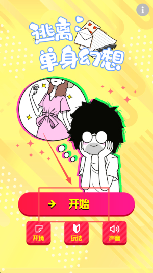 1、开启逃离:屏幕显示“逃离单身幻想 开始”,点击“开始”,即刻进入游戏。