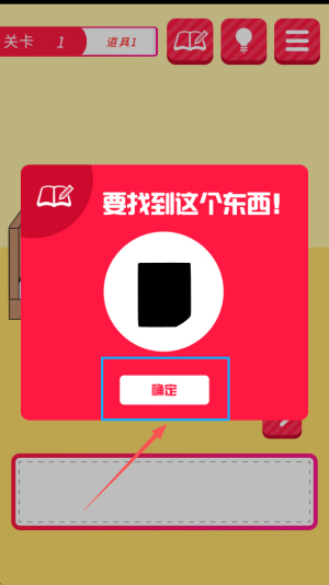 2、领取道具:界面提示“要找到这个东西!确定”,点击“确定”,获得道具1。