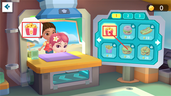 1、在点餐界面选择【爆米花】,它是当前解锁的可制作食物,选中后即可开启对应的制作流程,推进餐食制作任务。